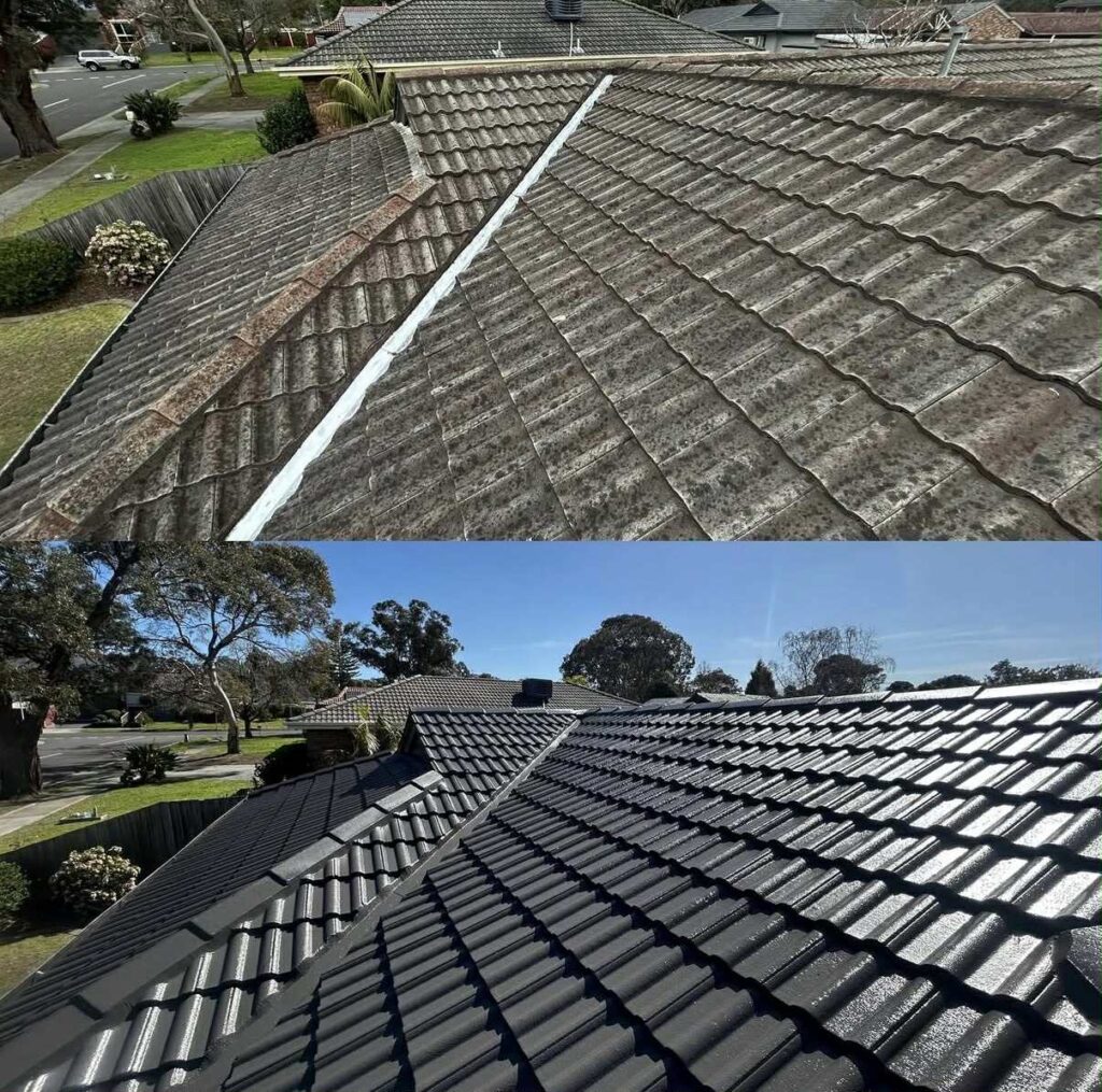 Our full roof restoration service gives your home a complete transformation. This includes a thorough roof clean, re-bedding (if required), re-pointing, and a professional roof painting finish. The result is a roof that not only looks brand new but is also strengthened and protected for years to come. This service can be completed on tiled and metal roofs.